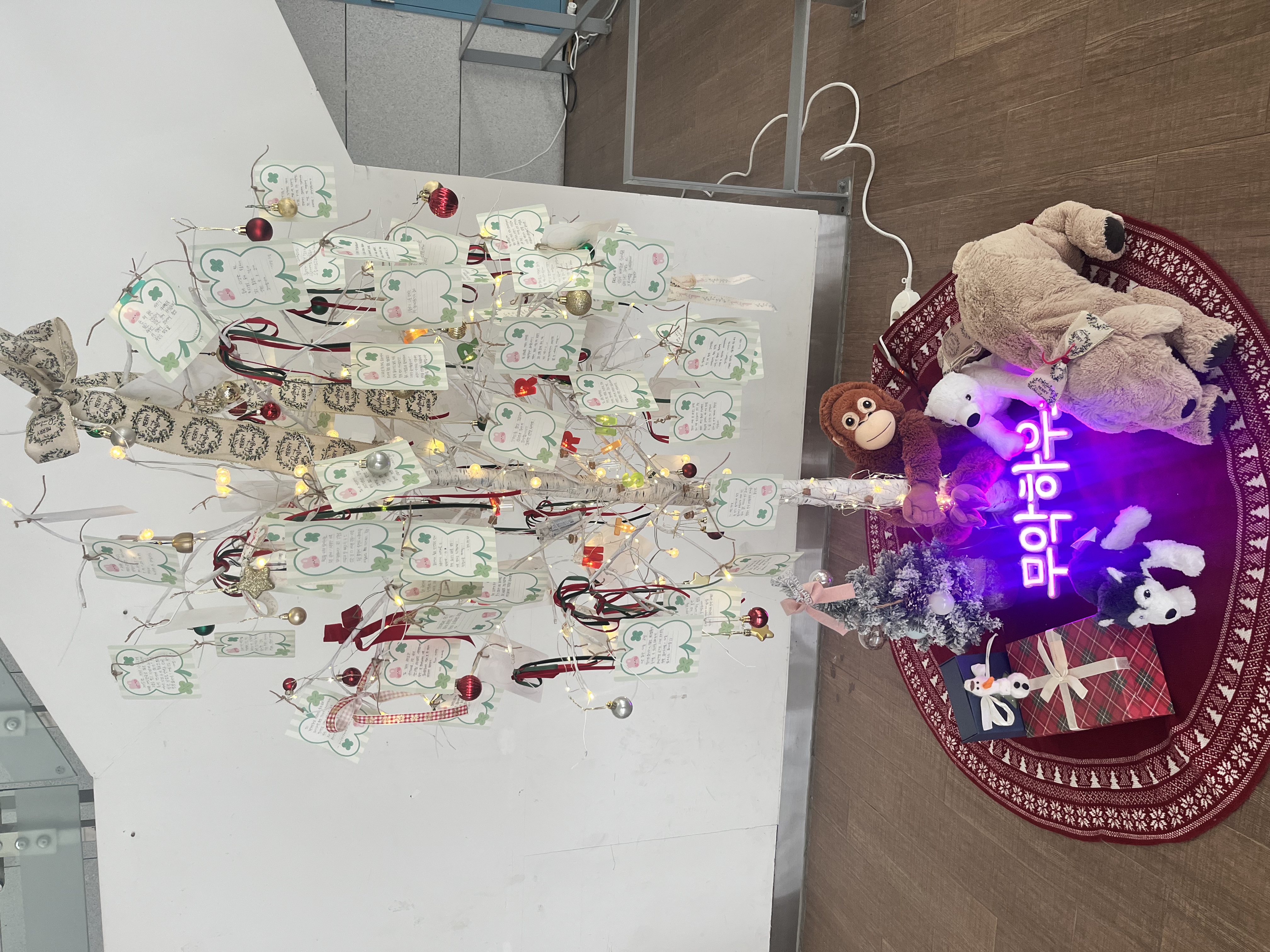 11월 10일(월)부터 11월 21일(금)까지, 송도에서 지낸 한 해를 마무리하는 <감사와 나눔의 축제> 가 열렸다. 특히, 각 하우스별로 고유의 개성을 내보일 수 있는 '감사나무 꾸미기' 이벤트는 이번 축제의 백미다. 해당 프로그램은 한 해의 마무리를 기념하며, 하우스별로 준비한 예쁜 메모지에 감사 메시지를 적어 나뭇가지를 장식하는 참여형 프로그램인데, 어느덧 2025년의 마지막을 향하고 있는 여정의 끝자락에서 잠시 멈춰 지난 시간을 돌아보고 소중한 사람들에게 고마움을 전할 수 있도록 기획되었다.
