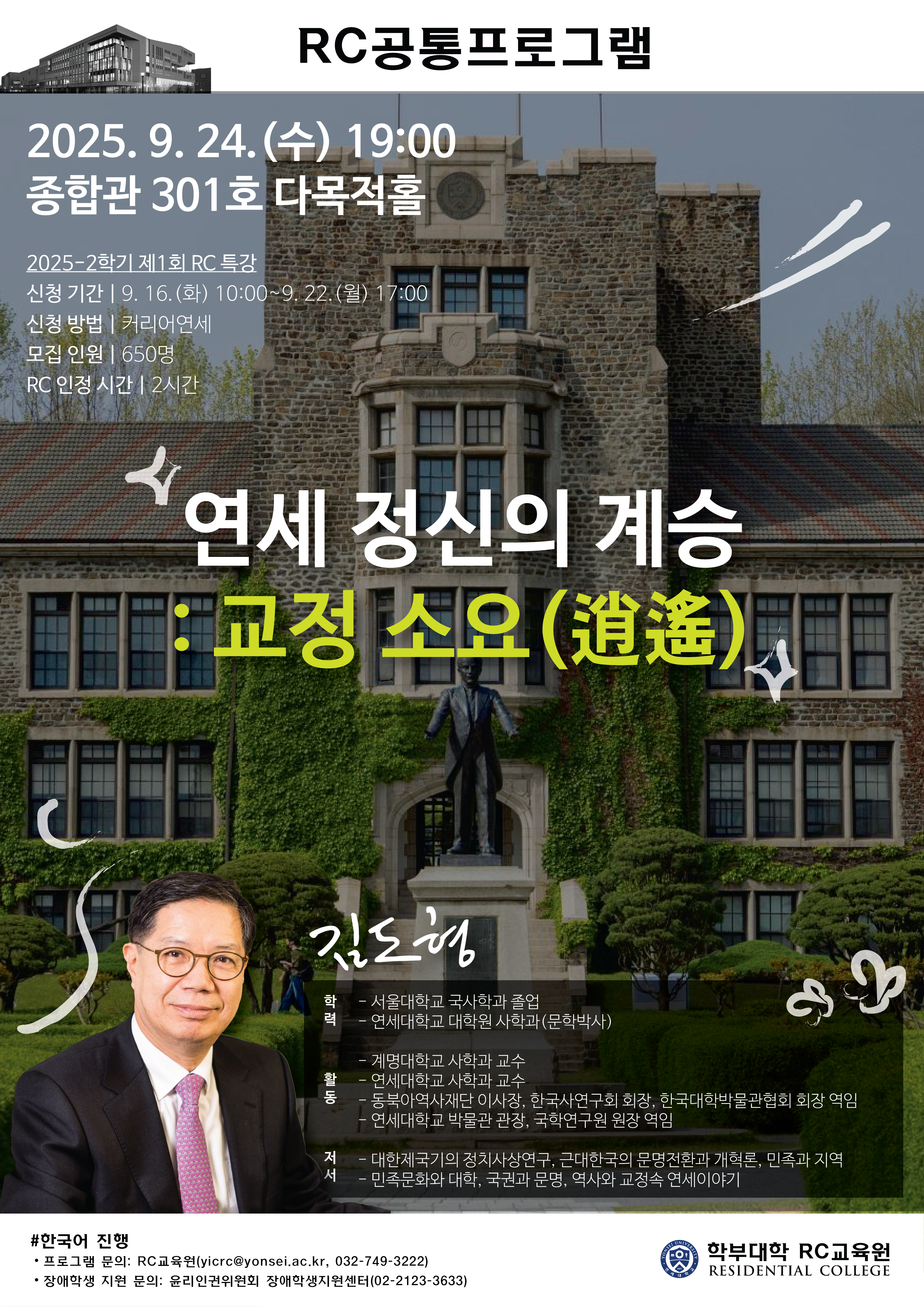 프로그램 문의: RC교육원 (yicrc@yonsei.ac.kr, 032-749-3222)