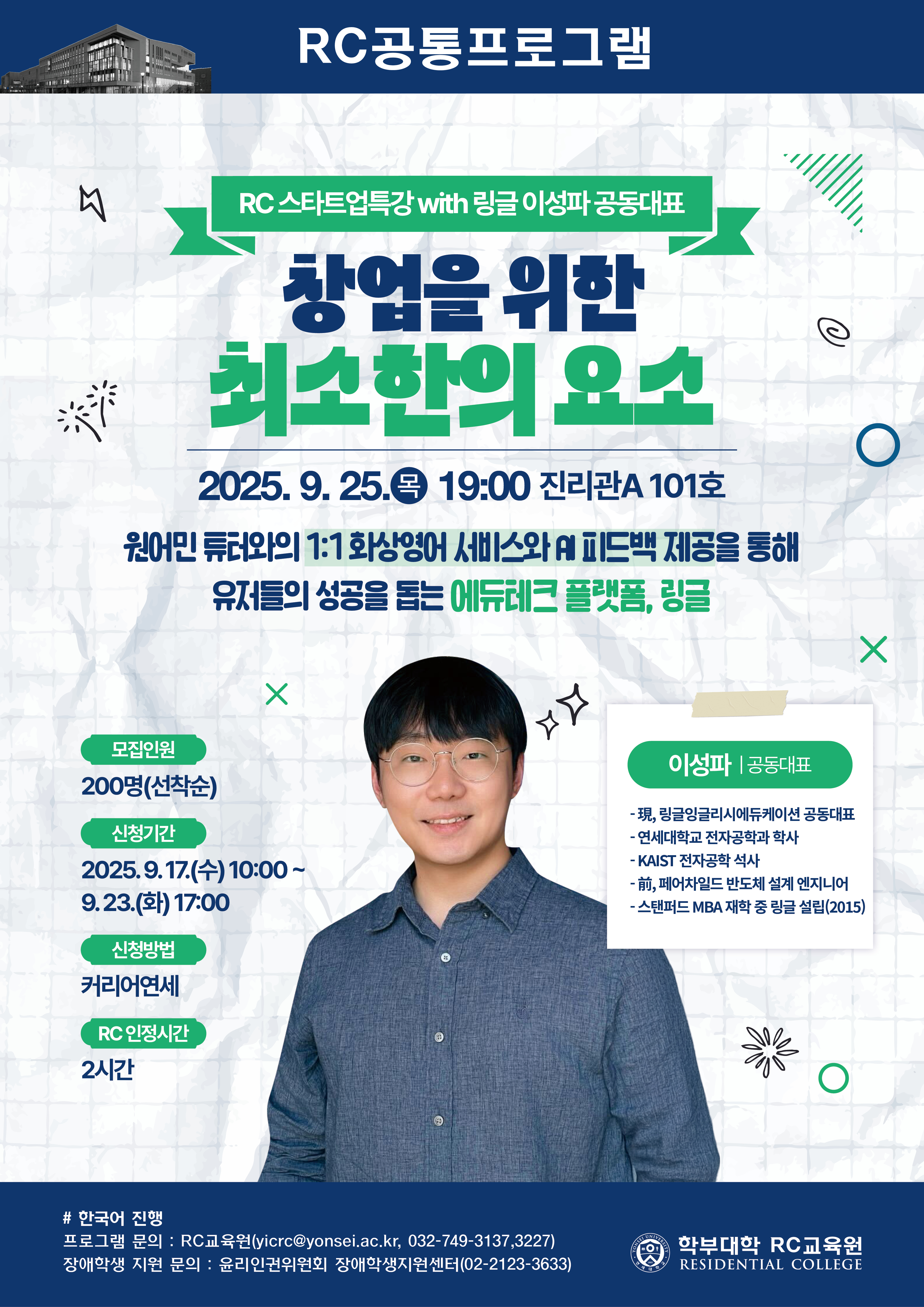 2025-2학기 RC 스타트업 특강 1 <이성파 대표(링글)- "창업을 위한 최소한의 요소">