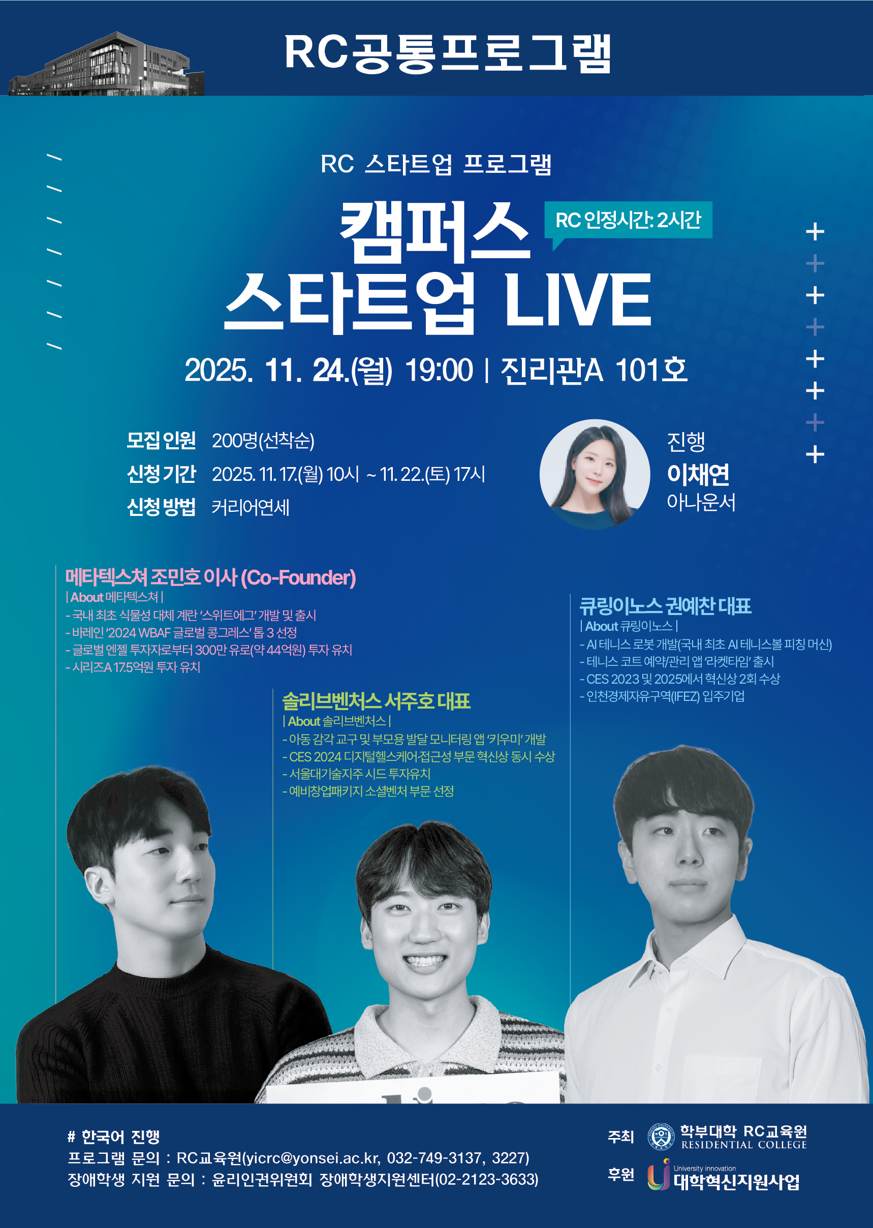 2025-2학기 RC스타트업 토크 콘서트 <캠퍼스 스타트업 LIVE> 참여 안내
